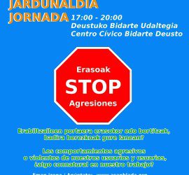 Portaera erasokor edo bortitzei buruzko jardunaldian izena emateko epea zabalik dagoela jakinarazi nahi dizugu. Martxoaren 17an 17.00etatik 20.00etara Deustuko Bidarte Udaltegian izango da jardunaldia. Sarrera dohainik izan arren, izena ematea beharrezkoa da, persona – kopurua mugatua delako. Jardunaldian izena emateko, egin klik esteka honetan: jardunaldia martxoak 17. Te comunicamos que se […]